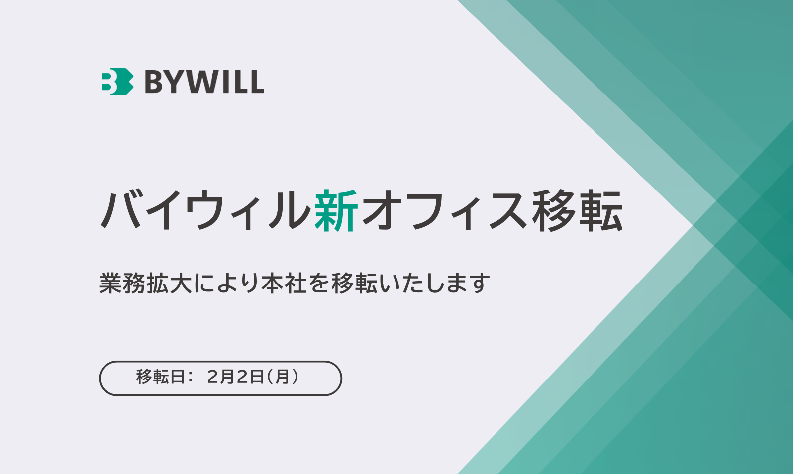 このたび株式会社バイウィルは、来月2月より本社を移転することとなりましたので、ご案内申し上げます。